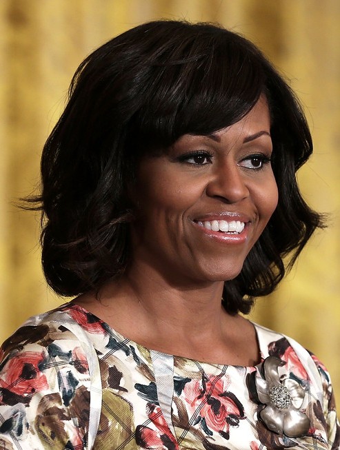 Michelle Obama Medium Hairstyles: Big Wavy Hairstyle for Black Women